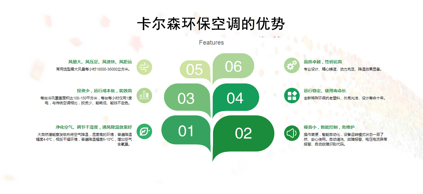 應(yīng)用范圍: 適用于高溫或有異味的車(chē)間:熱處理廠(chǎng)、鑄件廠(chǎng)、塑料廠(chǎng)、鋁型材廠(chǎng)、制鞋廠(chǎng)、皮件廠(chǎng)、電鍍廠(chǎng)、印染廠(chǎng)等各種化工廠(chǎng)等。 適用于勞動(dòng)密集型企業(yè):服裝廠(chǎng),各類(lèi)裝配車(chē)間,網(wǎng)吧等。 適用于需要降溫又需要一定濕度的場(chǎng)所:棉紡廠(chǎng)、毛紡廠(chǎng)、麻紡廠(chǎng)、織布廠(chǎng)、化纖廠(chǎng)、經(jīng)編廠(chǎng)、加彈廠(chǎng)、針織廠(chǎng)、絲織廠(chǎng)、襪廠(chǎng)等各類(lèi)紡織廠(chǎng)。 適用于:倉(cāng)儲(chǔ)物流領(lǐng)域、園藝溫室大棚通風(fēng)降溫、畜牧場(chǎng)降溫等場(chǎng)所。 全國(guó)服務(wù)熱線(xiàn):13960350919